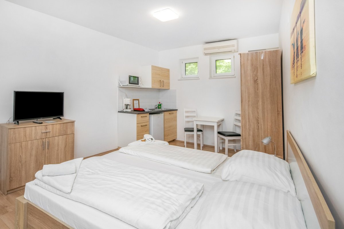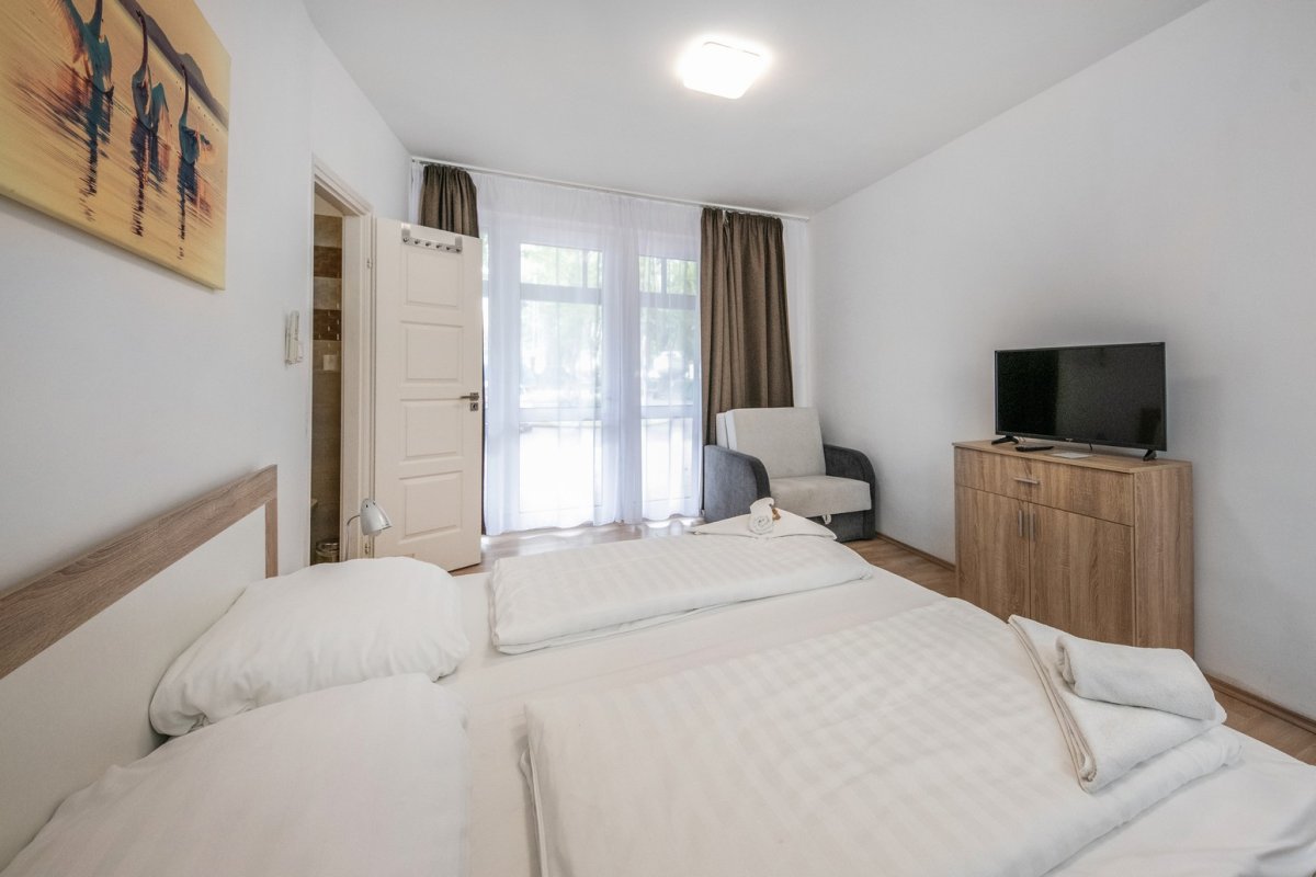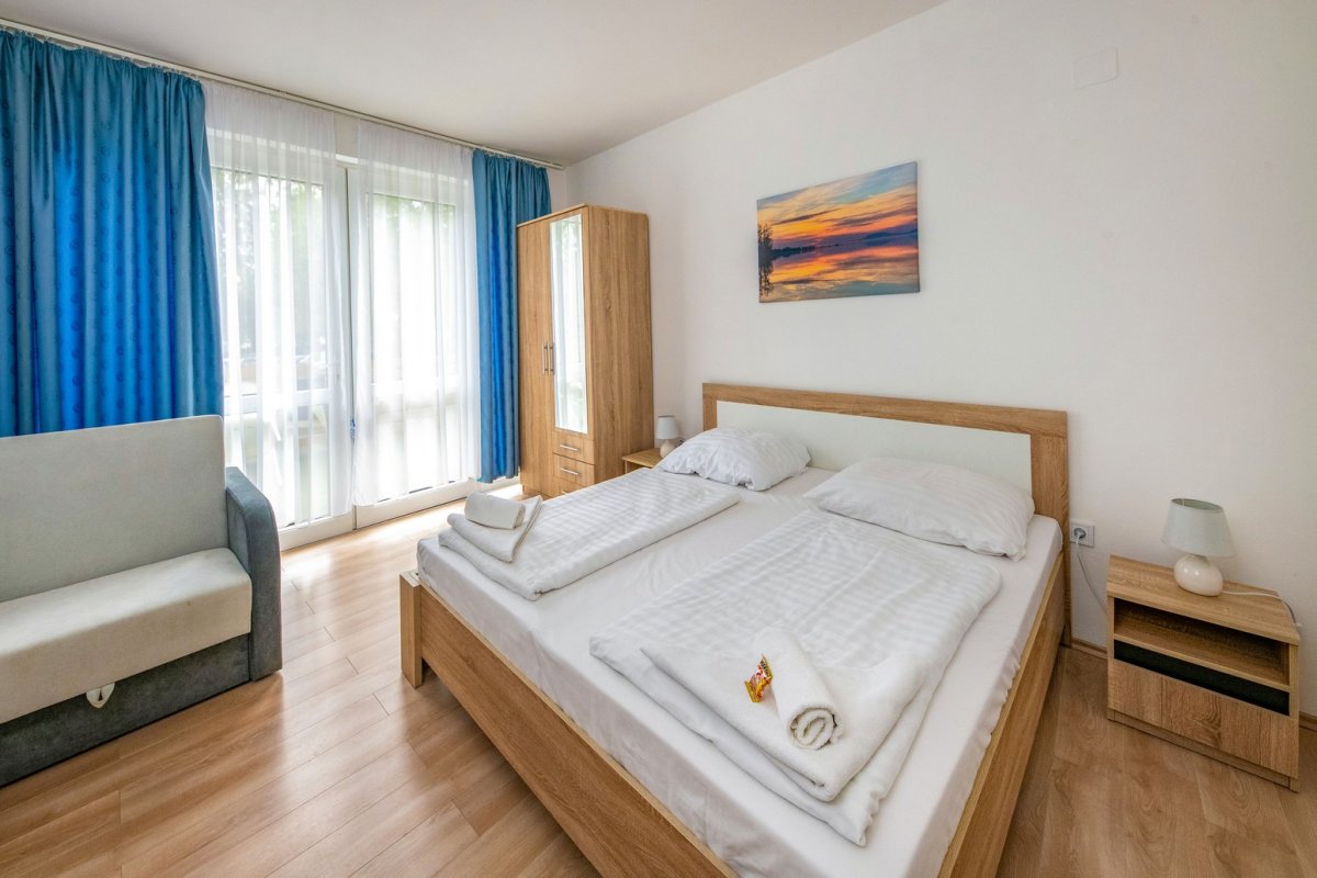 The Sekli Pension is located in the center of Balatonlelle on the direct waterfront territory of the marina between the free beach and the pay beach. The Sekli apartments are air conditioned all have well equipped kitchen, cable TV and free WI-FI. In the bathrooms there are showers. All apartments have terrace with a view of the marina. In the Restaurant 30 meters from the apartments in the marina our guests can have preferential breakfast and dinner. The marina area is closed, with guarded parking.