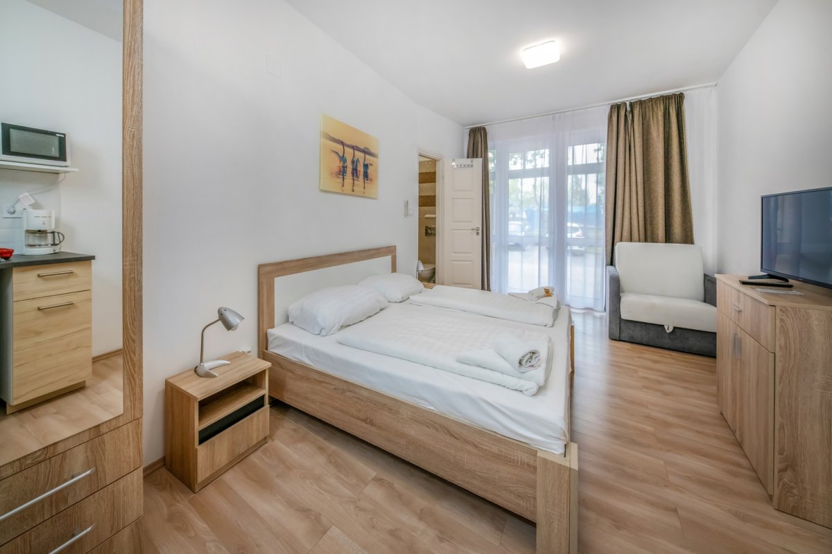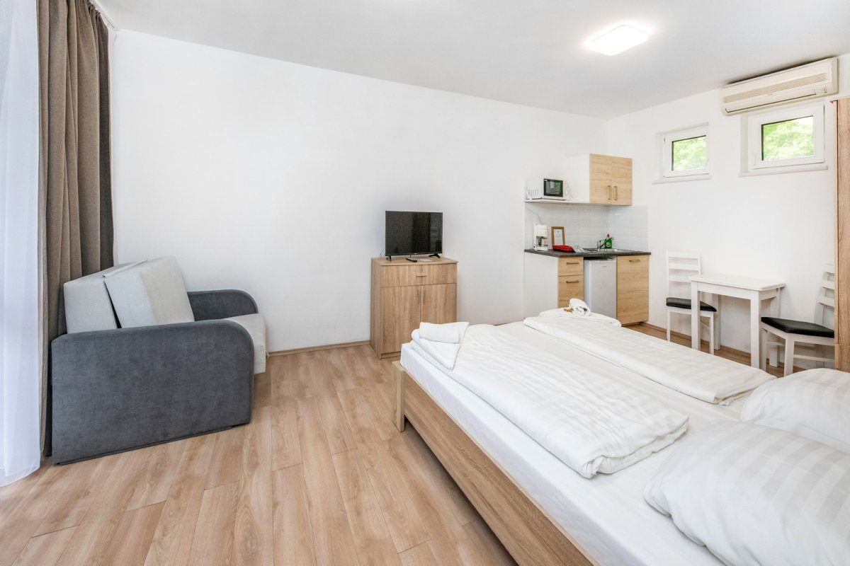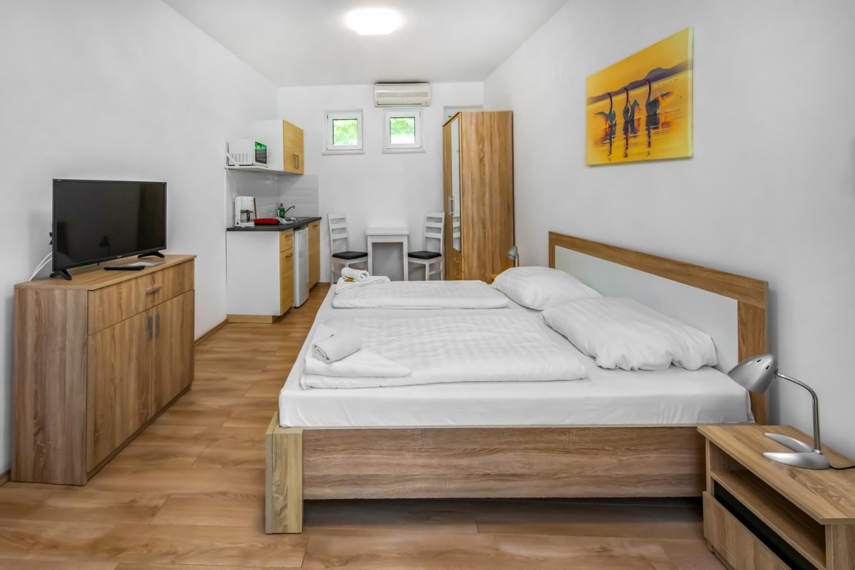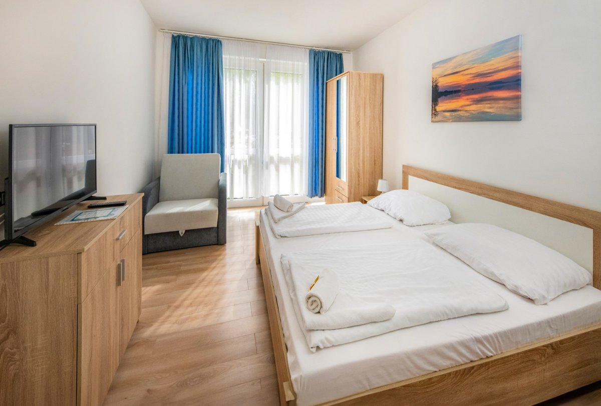 The Sekli Pension is located in the center of Balatonlelle on the direct waterfront territory of the marina between the free beach and the pay beach. The Sekli apartments are air conditioned all have well equipped kitchen, cable TV and free WI-FI. In the bathrooms there are showers. All apartments have terrace with a view of the marina. In the Restaurant 30 meters from the apartments in the marina our guests can have preferential breakfast and dinner. The marina area is closed, with guarded parking.